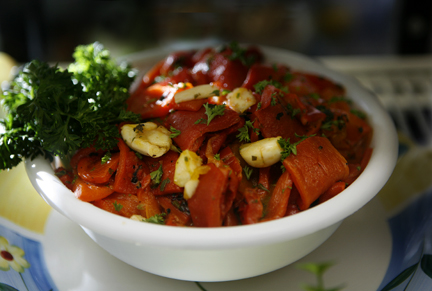 Cream of Tomato, made from tomatoes sauteed with celery, onion, and basil turned even richer from the cream that cooks into the soup to finish it.